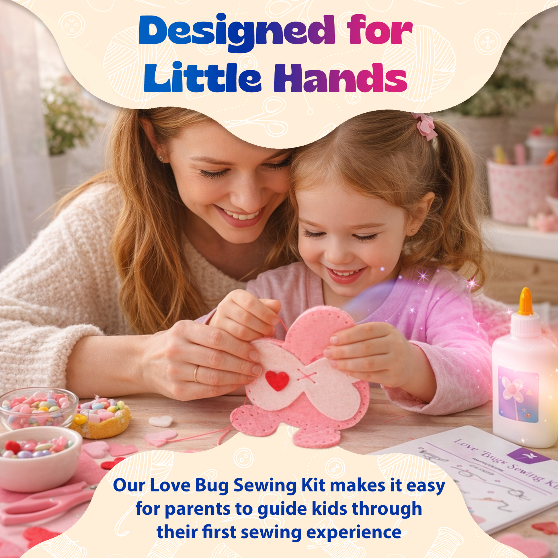 Bring crafting joy and quality time together with our Love Bugs Sewing Kit — a beginner-friendly DIY project that helps kids learn basic sewing skills. Bright colors, soft felt, and heart-filled charm make this kit perfect for Valentine’s Day gifting, creative playdates, and screen-free crafting fun.