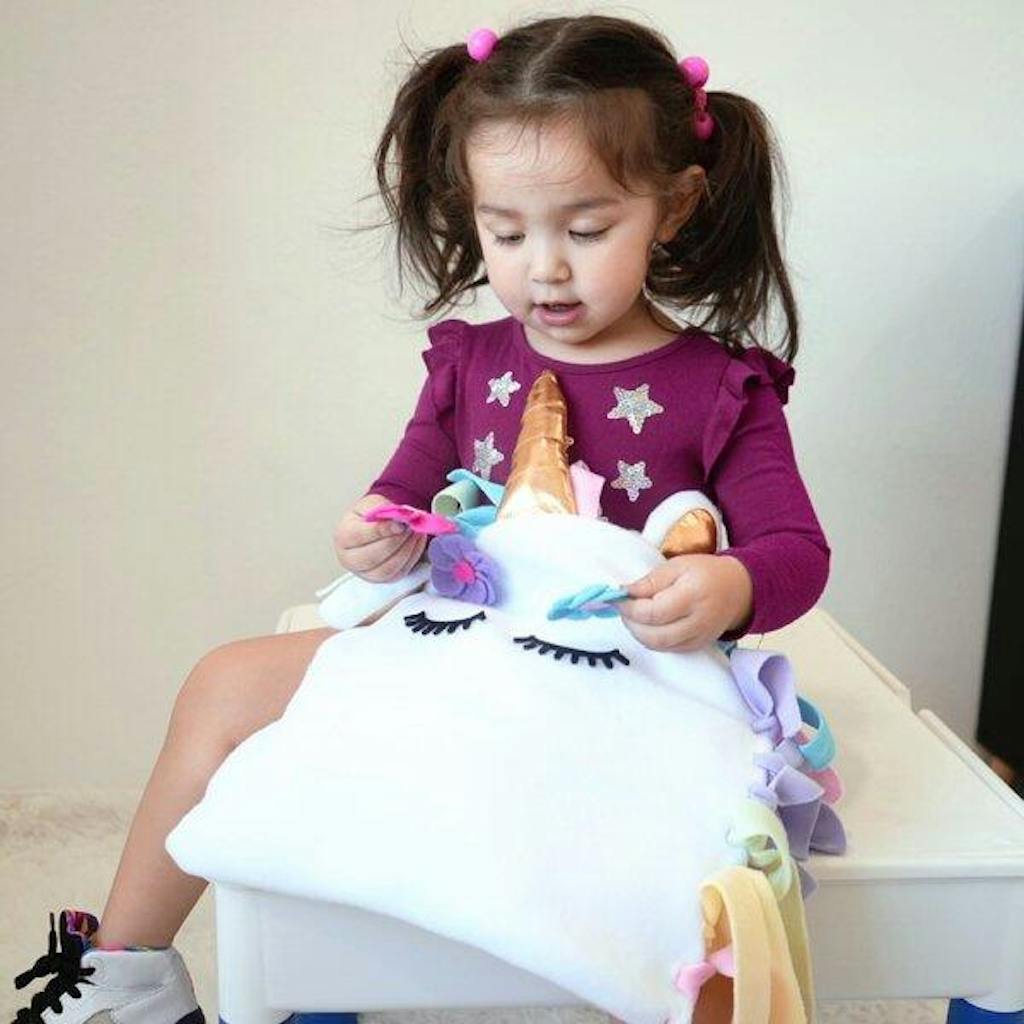 My daughter absolutely loved this craft making of a unicorn pillow. So quick and easy for my toddler to do. It kept her entertained for a while. I truly recommend.