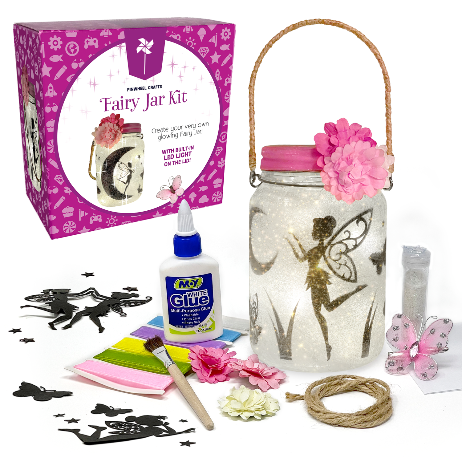 🧚♂️ Pinwheel Crafts Fairy Jar Kit: Create your own mesmerizing fairy jar with these magical elements: