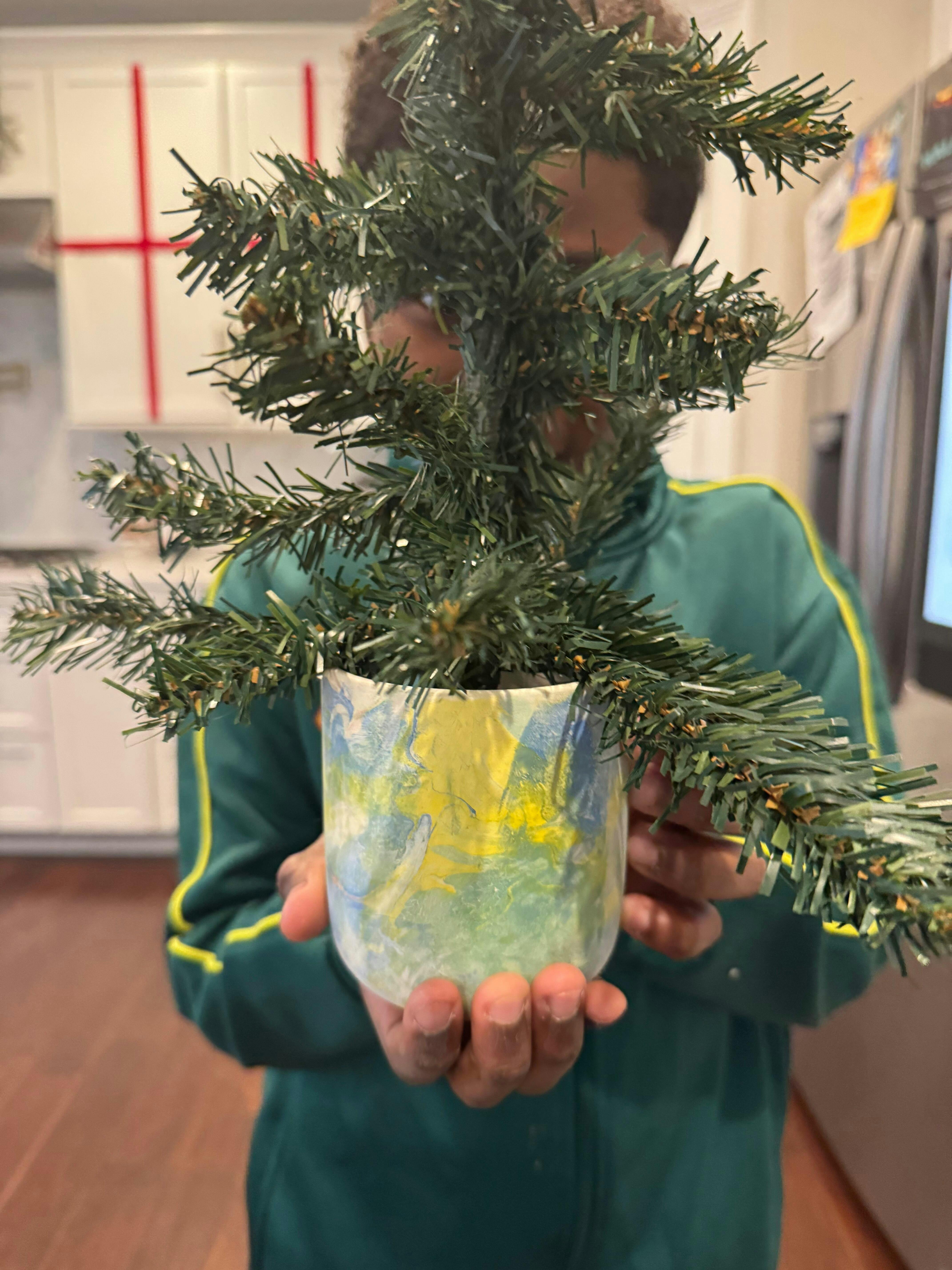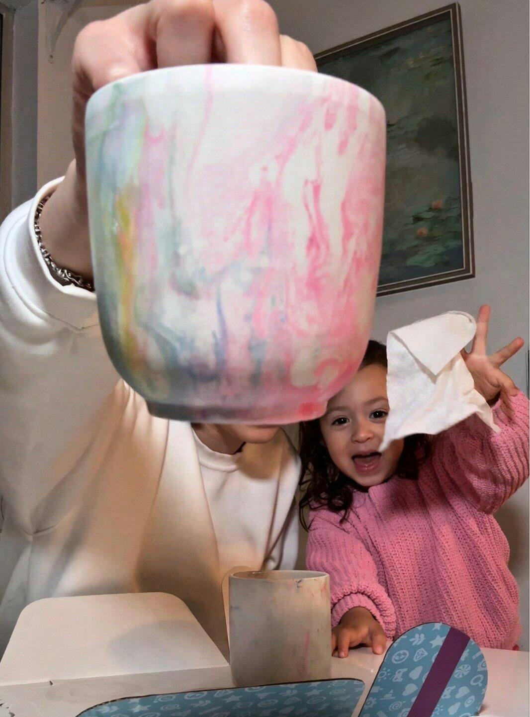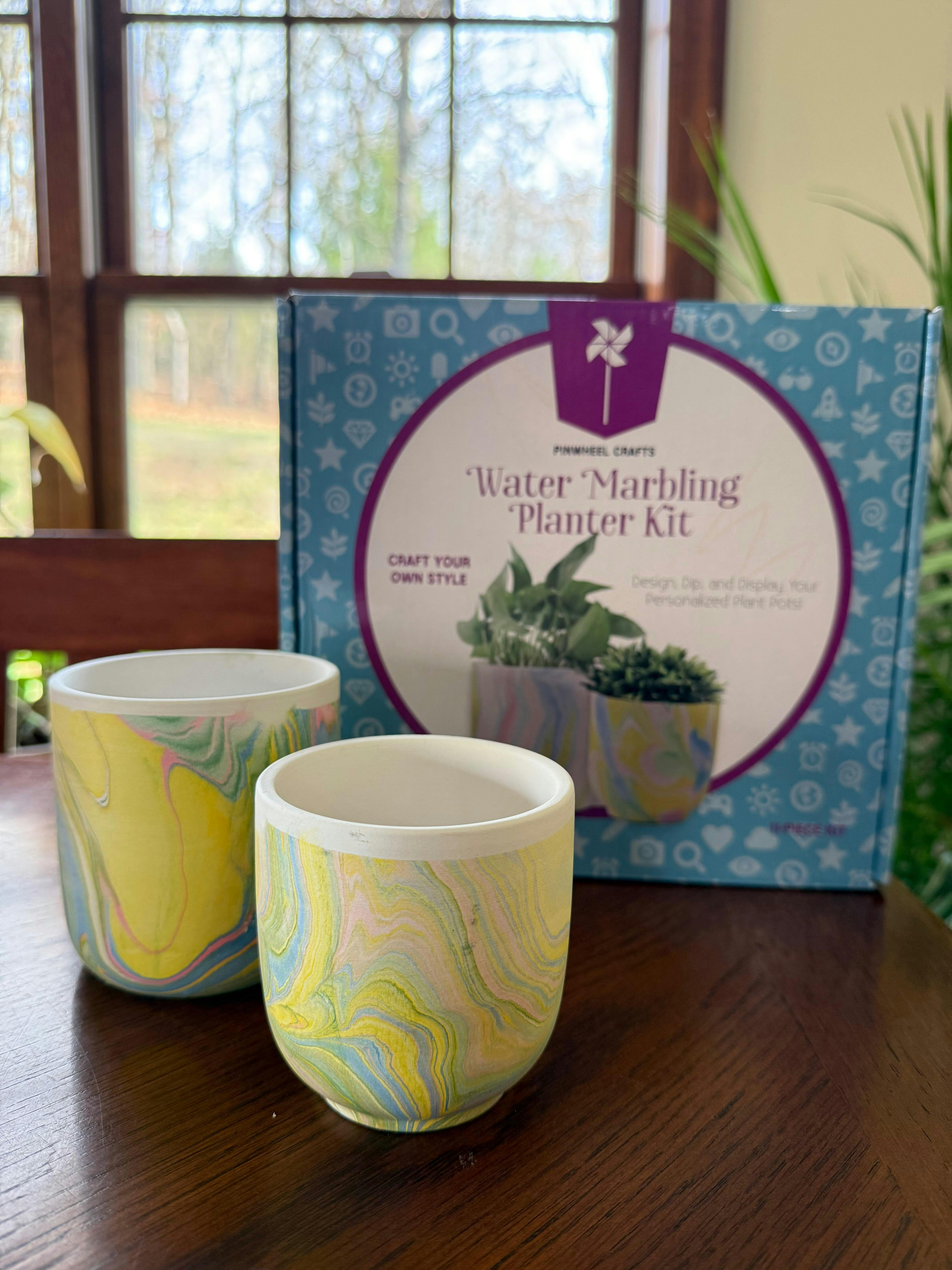Once it arrived, my two youngest kiddos (10 and 9) dived right in. It was super simple to put together and gave us something fun to do together. It came with all of the necessary items needed to make the final marbeling planter. So glad I ordered this for my kids and I to try!