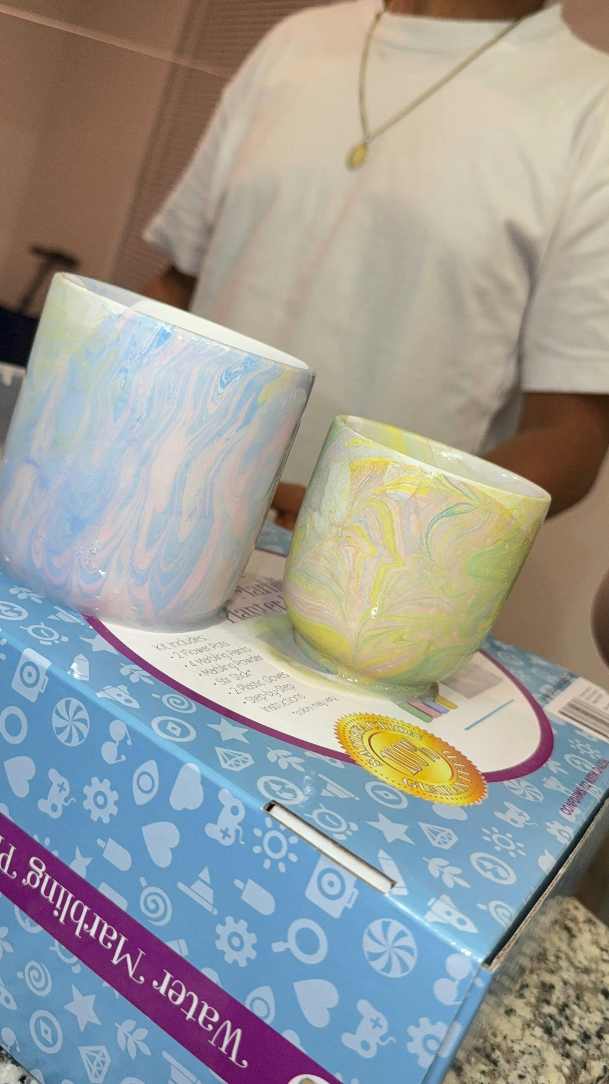 Create mesmerizing marble designs with ease! Pinwheel Crafts Water Marbling Paint Kit includes everything kids and teens need to dip, swirl, and decorate pots, mugs, and more. Safe, non-toxic, and fun for all ages — perfect for birthdays, craft nights, or unique DIY gifts.